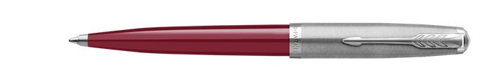 Golyóstoll, 0,7 mm rotációs, ezüst színű klip, piros tolltest, PARKER "Royal 51 Core", fekete