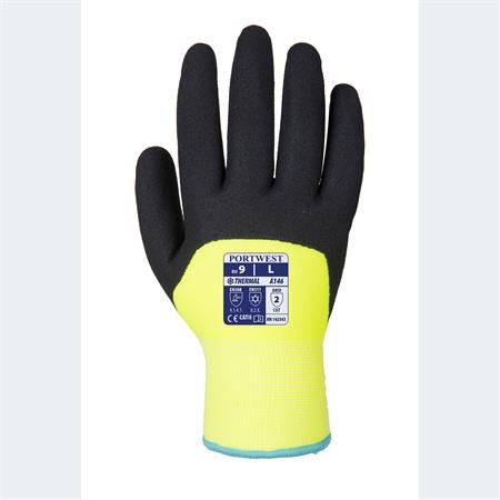 Védőkesztyű, téli, dupla bélés, nitril, mártott, XL méret, sárga-fekete